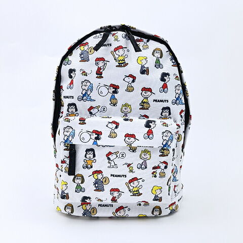 スヌーピーやその仲間たちがリュックいっぱいにデザインされたリュックです♪背中部分はメッシュ素材になっているので、夏でも蒸れずらく使いやすい!表のポケットも大きめで、定期入れなど入れていただけます。生地もしっかりしていて、お子様でも背負いやすい♪