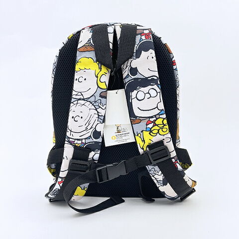 スヌーピーやその仲間たちがリュックいっぱいにデザインされたリュックです♪背中部分はメッシュ素材になっているので、夏でも蒸れずらく使いやすい!表のポケットも大きめで、定期入れなど入れていただけます。生地もしっかりしていて、お子様でも背負いやすい♪
