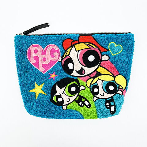 パワーパフガールズのサガラポーチです。サガラ刺繍は一本の糸をかぎ状の針ですくいあげながら縫う手法。毛糸をつかったふわふわとした感触の高級な立体感のあるデザインが可愛いです♪メイク用品やお菓子、小物など入れるのにぴったりなのでバッグの中の収納に便利☆少し大きめでしっかりしているので、お子様のおむつなどを数枚入れるのにも◎バッグに入れておくだけでも可愛いのでおすすめです♪