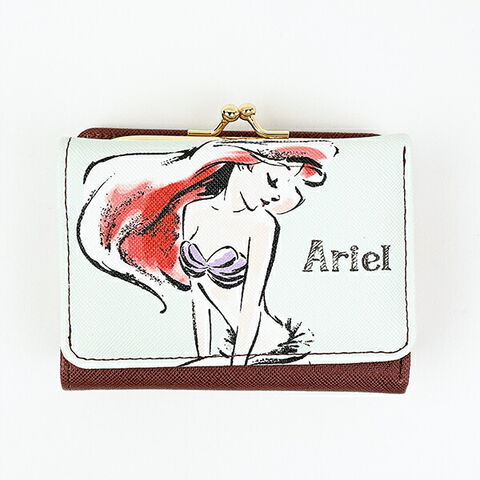 アリエルの水彩タッチ柄デザインが可愛い三つ折りがま口財布です。三つ折りタイプで小さなかばんにもスッポリ収まるコンパクトサイズ感☆がま口も大きく開いて取り出しやすく使い勝手◎とっても可愛いデザインなのでぜひお手にとってみてください☆