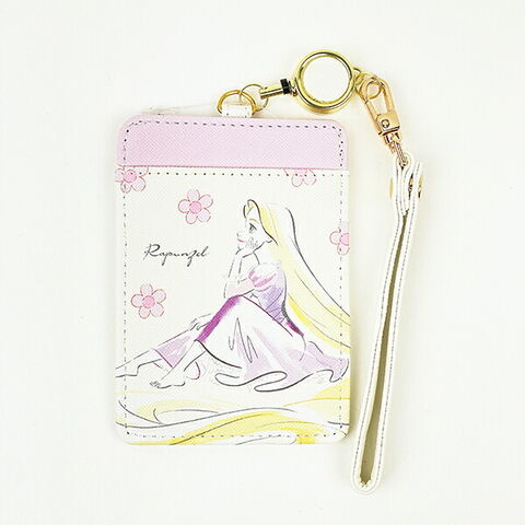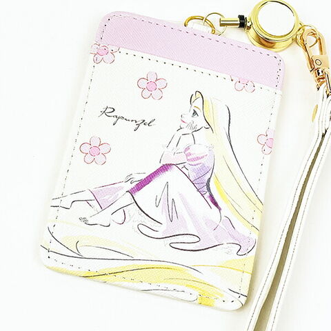 ディズニープリンセス ラプンツェル 水彩タッチ柄リール付きパスケース パープル 定期入れ Disney