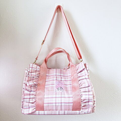 フリルがとてもキュート♪なマイメロディのトートバッグです☆彡 マチ付きなので飲み物や大きめなポーチも入れていただます♪ 普段使いはもちろん、通勤・通学にもおススメです♪ショルダー紐も付いていて便利!