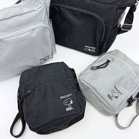 スヌーピーのショルダーバッグです♪スヌーピーの刺しゅうがワンポイントに入ってる♪マチ付きなのでたっぷり入るサイズ感♪ポケットがたくさんあるので、小物の整理もばっちり◎シンプルデザインで男女問わず使えます☆彡