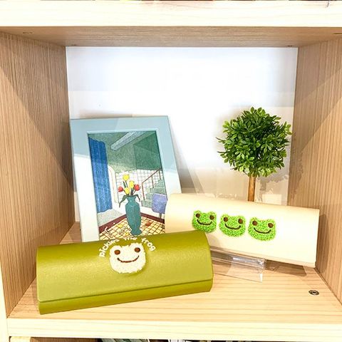 革調のシンプルなデザインにもこもこのワンポイントが素敵なメガネケースです。ハードケースなので、大事な眼鏡を守ってくれます♪