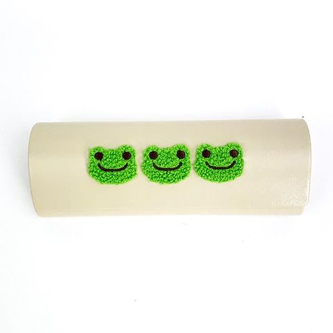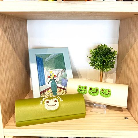 革調のシンプルなデザインにもこもこのワンポイントが素敵なメガネケースです。ハードケースなので、大事な眼鏡を守ってくれます♪