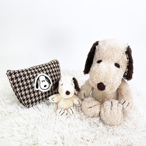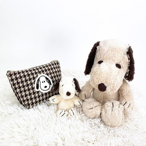 スヌーピー モカチェック MC マスコット ぬいぐるみ ボールチェーン ブラウン