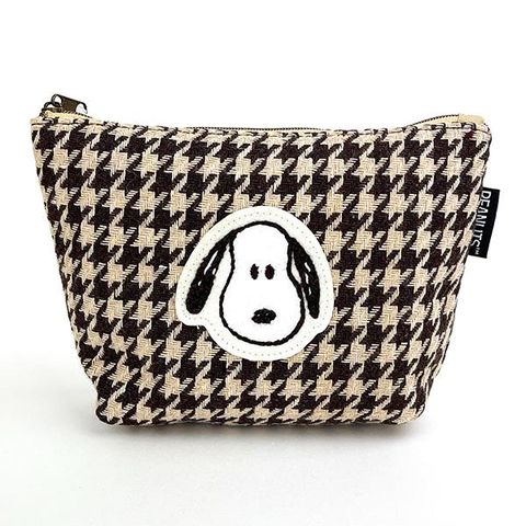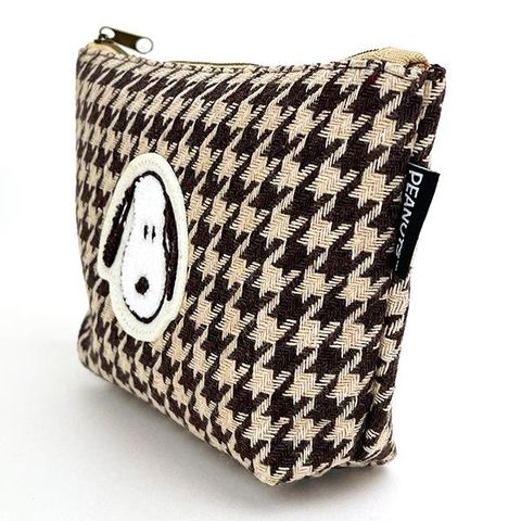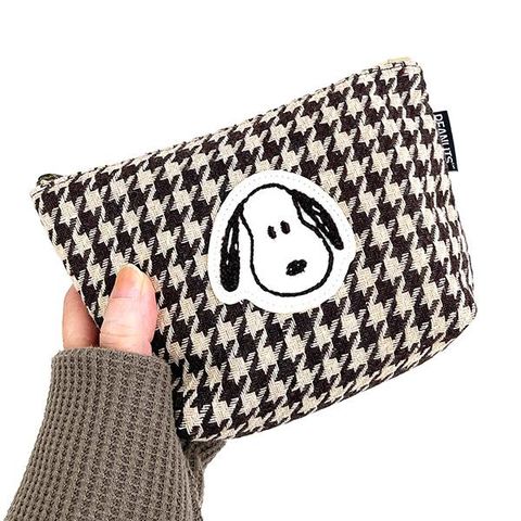 スヌーピー モカチェック 化粧ポーチ 小物入れ 千鳥格子 ブラウン
