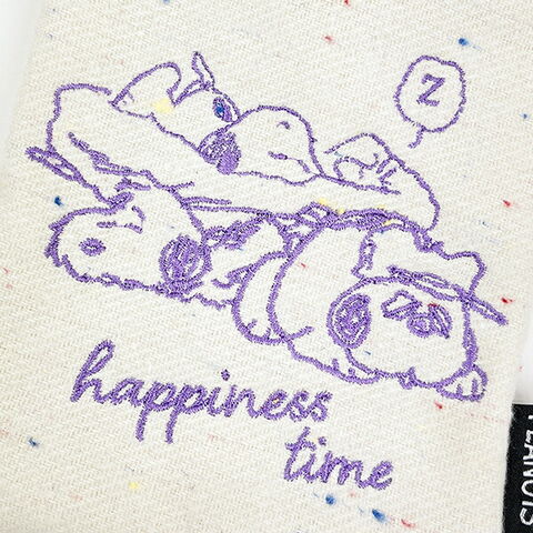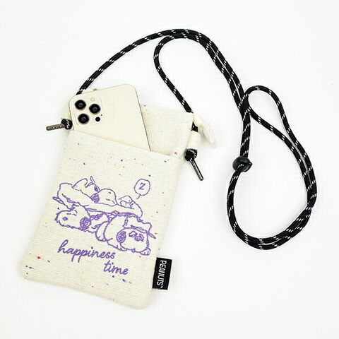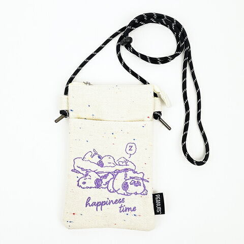 スヌーピーと兄弟たちが気持ちよさそうに寝ているほっこり幸せなアートが目を惹くファスナーサコッシュです。スマホを入れておでかけしてね♪