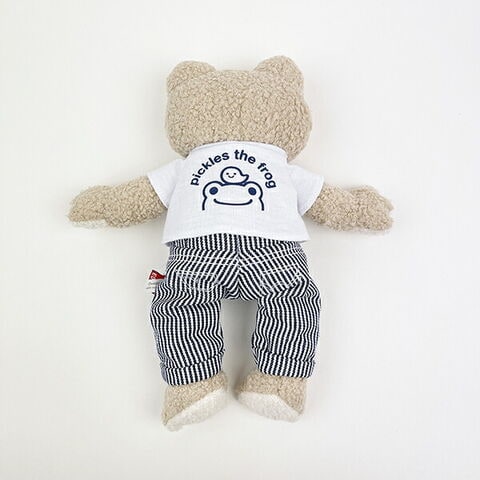 ピクルスがEDWINとコラボ!EDWINロゴ入りのTシャツにヒッコリーパンツを履いて、いつもよりちょっとかっこいいピクルスに♪ピクルスのイラストがプリントされた後ろ姿もポイントです。