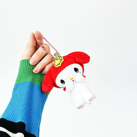マイメロディ50周年&クロミ20周年を記念し歴代のコスチュームを着たマスコットが登場です!あの懐かしい表情から最新ファッションのデザインまで。こちらはマイメロディ、泣き顔レッド色です。