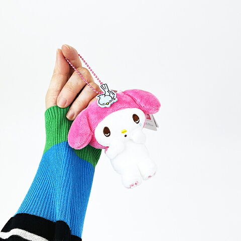 マイメロディ50周年&クロミ20周年を記念し歴代のコスチュームを着たマスコットが登場です!あの懐かしい表情から最新ファッションのデザインまで。こちらはマイメロディ、泣き顔ピンク色です。
