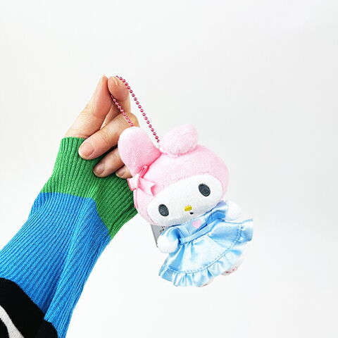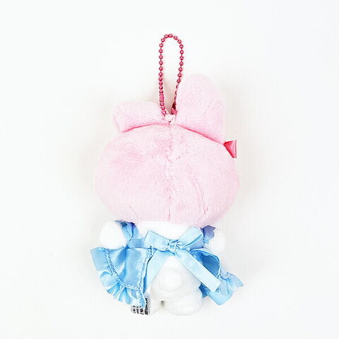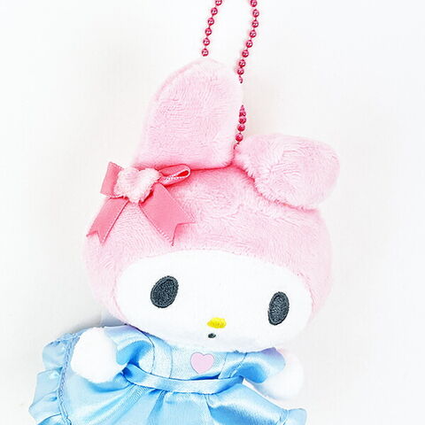 マイメロディ50周年&クロミ20周年を記念し歴代のコスチュームを着たマスコットが登場です!あの懐かしい表情から最新ファッションのデザインまで。こちらはマイメロディ、エプロンのブルー色です。