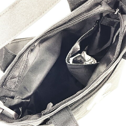 コンパクトなショルダーですが、ボトル用のポケットが付いています◎ちょこんとお座りしたスヌーピーがポイント♪ちょっとしたおでかけにオススメなシリーズ最小サイズです!