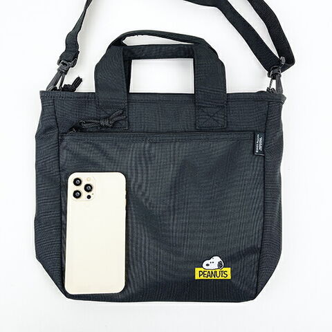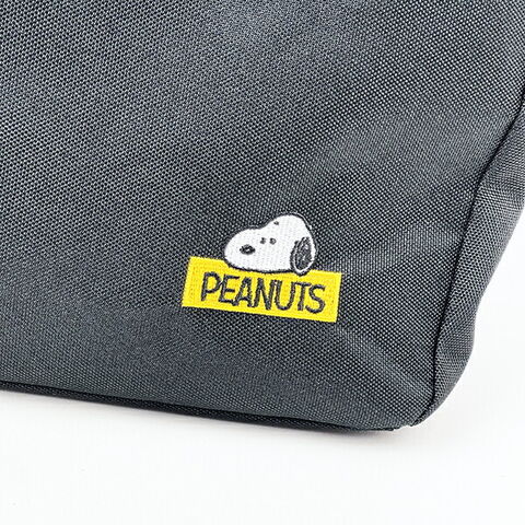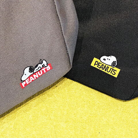 ショルダーでも手持ちでもお使いいただけるバッグです。ボトルを入れられるポケットが中についており、アルミ加工なので水滴が付かない♪ブラックカラーにシンプルなスヌーピーのワンポイントが使いやすいデザインです♪