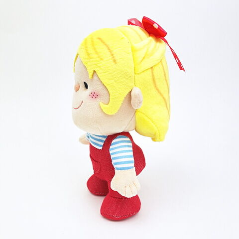 レトロな魅力と愛らしいフォルム...水森亜土が描く女の子のぬいぐるみです。デニム素材のサロペット横から見たフォルム、ほっぺたとお尻がポイント◎ギュッとしやすいサイズ感◎同シリーズで男の子もございますのでお部屋に飾ったり、水森亜土がお好きなお友達にプレセントしてみてはいかがですか♪
