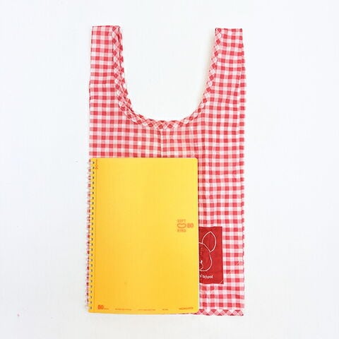 くまのがっこう ギンガムガムチェック ぬいぐるみエコバッグ レッド
