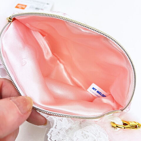 マイメロディのぬいぐるみサコッシュです。マイメロディのバースデーを記念した「トワルドジュイ風」の柄と、淡いピンクの「白イチゴ」をモチーフにしたヴィンテージガーリーなデザインシリーズ♪透け感のあるシフォン素材やオーガンジーフリルが可愛いポイント☆ちょっとしたお出かけにぴったり♪小銭入れなどお財布代わりにも◎ファスナー付きで中身が出る心配もないので安心してお使いいただけます☆彡