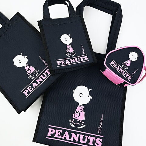 スヌーピー チャーリーブラウン スクエアランチバッグ(M) ブラック SNOOPY