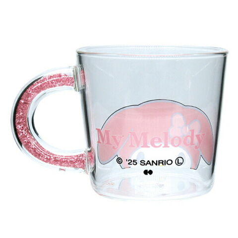 マイメロディのビーズインハンドルマグカップです。ハンドルの中にビーズが入っていてキラキラで可愛い☆耐熱グラスなので毎日お使いいただけます。可愛いマイメロがひょっこり覗いているデザインで毎日のティータイムが楽しくなりそう♪気分が上がりそうなマグカップでぜひお楽しみください☆【容量:390ml】