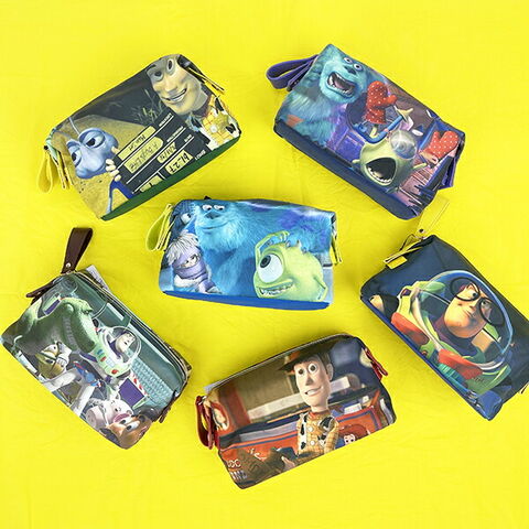 PIXARの代表的な作品をピックアップしたシリーズ。映画のワンシーンを切り取ったデザインが目を惹くポーチはマチ付きでたっぷり入ります♪