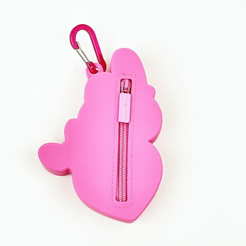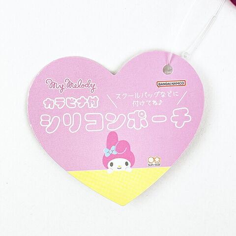 マイメロディのカラビナ付シリコンポーチ(はあとぎゅっ)です。お気に入りのキャラクターをアピールできてスクバにぴったり☆大きめポーチで存在感抜群!コスメやアクセを収納できます☆ぜひお好きなキャラクターを付けてアピールしてみてください♪