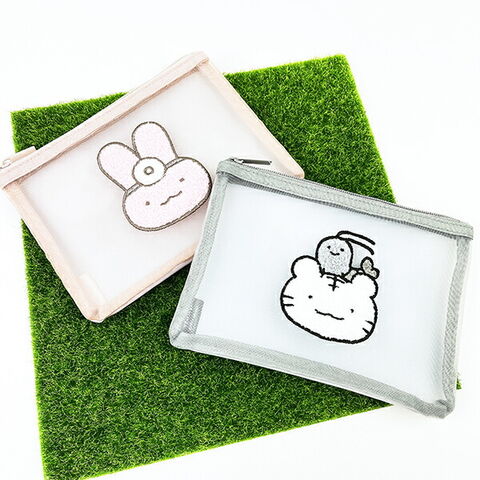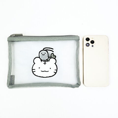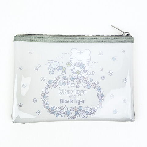 ホワイトタイガーとブラックタイガーのサガラ刺繍メッシュポーチです。メッシュ×PVCの異素材MIXが可愛い♪小物などアイテムをまとめるのにぴったり☆中身が見えるので、入れた物を一目で確認できます!ほっこりデザインに癒されます♪