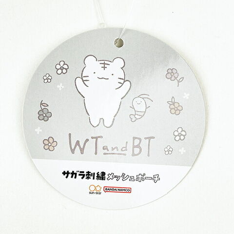ホワイトタイガーとブラックタイガー サガラ刺繍メッシュポーチ ブラック