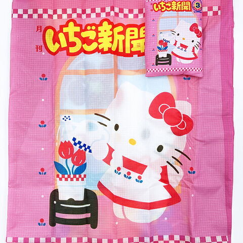 歴代のハローキティの表紙だけを集めました!使いやすい底マチタイプのエコバッグです。いちご新聞50周年を記念して表紙をそのまま使用した柄と歴代アートが並んだ集合した柄の2種類で魅力たっぷりなデザインシリーズ♪いちご新聞は世界中のみんなが仲良く、思いやりの心を大切にしてほしいという想いを伝える新聞として、いちごの王さまの提案で創刊されたよ☆バッグなどに取り付けられるカラビナ付きなのでもしものお買い物時も安心です♪【収納時のサイズ:11.5cm×8cm×3cm】