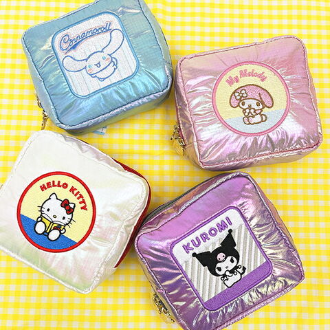 レトロなデザインなサンリオのスクエアポーチです。キラキラ生地で刺繍デザインが派手かわいい♪高級感があるチャックでそれぞれのキャラクターの形♪内ポケット付きで分けて収納可能◎新しいポーチとしてお迎えしてみませんか♪
