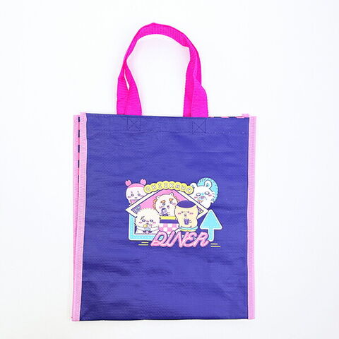 アメリカンダイナーで楽しく食事をするちいかわたちを80年代ポップなカラーリングでアレンジしました!背景の小物にも注目!!レストランの卓上POPをイメージしたPPバッグです。レジャーシートのようなPP素材で軽量なバッグ♪サブバッグとしても◎とっても可愛いデザインなのでぜひ同シリーズのアイテムで揃えてみませんか?