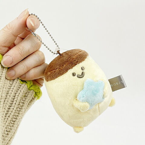 お文具といっしょ(プリンさん)のぬいぐるみキーホルダーです。背中部分に小物を入れられるファスナーポケット付き☆お星さまを持ったデザインがキュート♪ファスナーポケットにリップなどを入れて、バッグにつけて持ち歩いてもとっても可愛いです☆