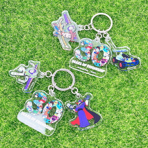 トイストーリーの映画公開30周年を記念して、トイストーリー4までのシーンやキャラクターをミックスさせた特別なデザインの3連アクリルキーホルダーです。目を引くダイカットデザインなので存在感抜群☆バッグなどのアクセントに◎トイストーリー好きにはたまらないデザインなのでぜひ同シリーズでお好きなアイテムを見つけてみてください☆彡