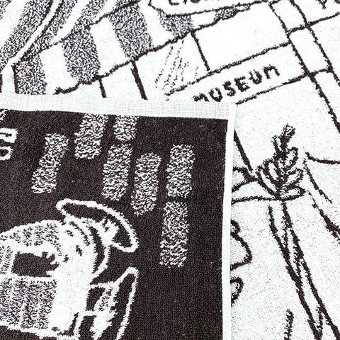 マイタウンをテーマにしたデザインがかわいい♪スヌーピーと仲間たちをジャカード織で表現した、柔らかな肌ざわりのタオルです。今治タオルブランドネーム付き。