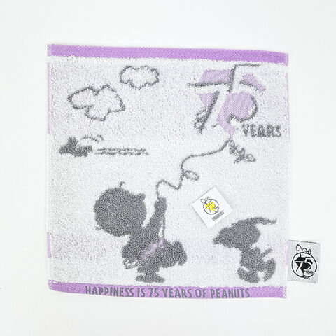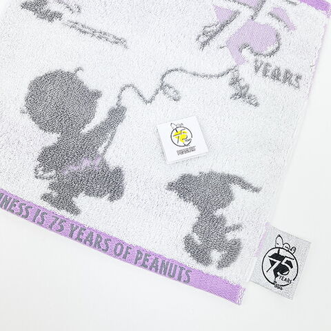 PEANUTSコミック誕生75周年の記念アート☆スヌーピーと仲間たちのシルエットをジャカード織で表現したやわらかな肌ざわりのタオルです♪吸水性に優れ、洗濯するたびにボリューム感がアップするタオル◎