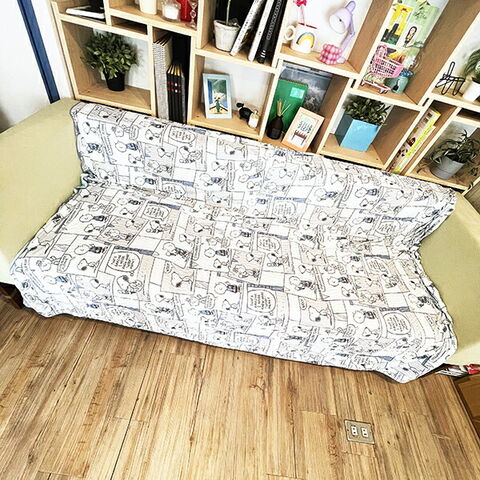 スヌーピーのコミック柄のクールケットです。手触りはガーゼのようですが優しい冷たさが嬉しい♪こちらはグレーです。