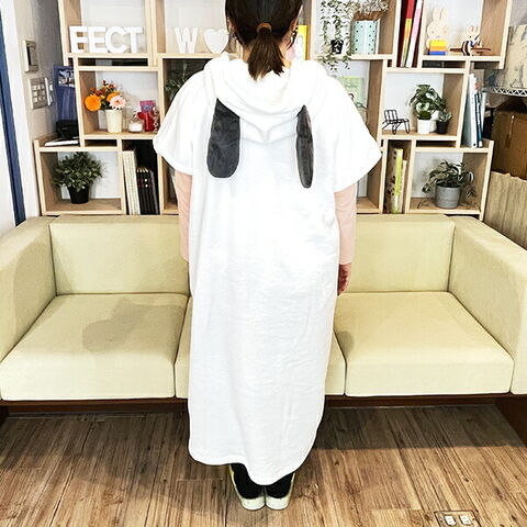 スヌーピー Happiness 耳付きポンチョ 着丈110cm フリーサイズ ホワイト アパレル SNOOPY 西川