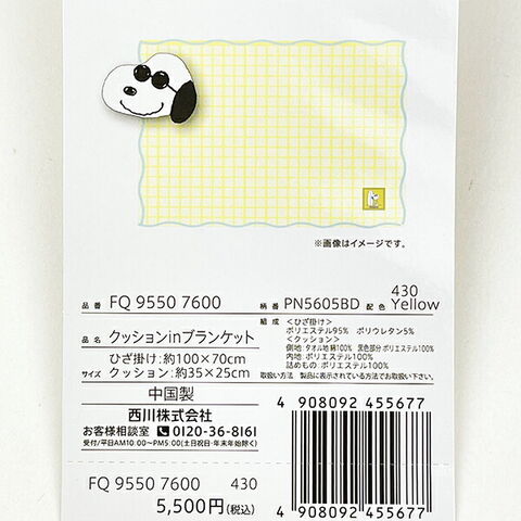 スヌーピー ジョー・クール クッションinブランケット イエロー 寝具 SNOOPY 西川