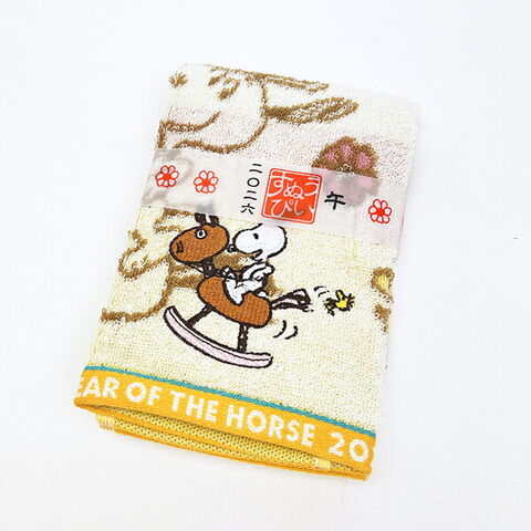 スヌーピー ウォッシュタオル Zodiac horse(午) アイボリー ハンカチ 西川 SNOOPY