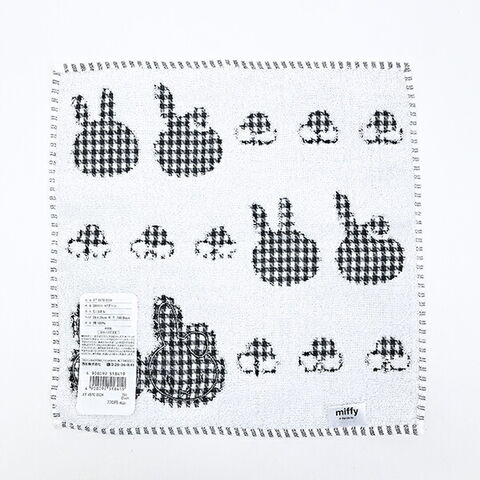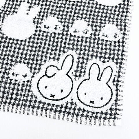 ミッフィーのミニタオルです♪千鳥格子柄にミッフィーと仲良しのダーンとお花が入った大人っぽいデザインがおしゃれ♪ふわふわな肌触りで綿100%なので、お肌にも優しく安心して使えます♪持ち運びに便利なサイズです☆彡