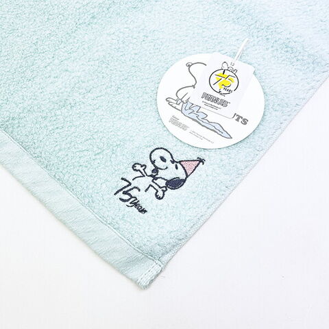 スヌーピーのフェイスタオルです♪パーティー帽子を被ったスヌーピーの75周年限定デザインがとってもキュート♪綿毛のようにふわふわ柔らかく軽くて綿100%なので、赤ちゃんにも安心して使えますよ♪スヌーピーと一緒に周年をお祝いしましょう☆彡