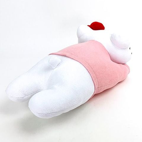 ハローキティーの抱き枕。ファスナーやボタンがなく、パイル素材でやわらかな肌ざわり。ご家庭でお洗濯してお使いいただけます。一人寝の練習のお友達にもお使いいただけます。