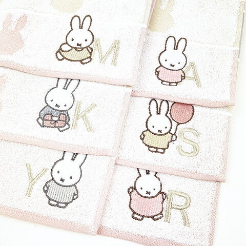 タオルのように吸水性にも優れていて、小さいため持ち運びにもとても便利なミッフィーのタオルハンカチ♪イニシャル入りでより大切に使いたくなる♪