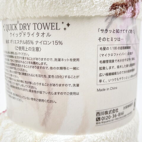 毛髪の1/100の超極細繊維(マイクロファイバー)使用。吸水性・速乾性抜群のクイックドライタオルでいつでもサラサラ♪能性タオルだから、洗面・入浴はもちろん、スポーツやレジャー、旅行でも大活躍!