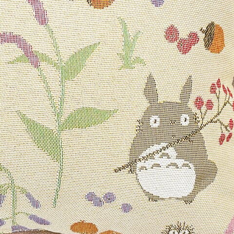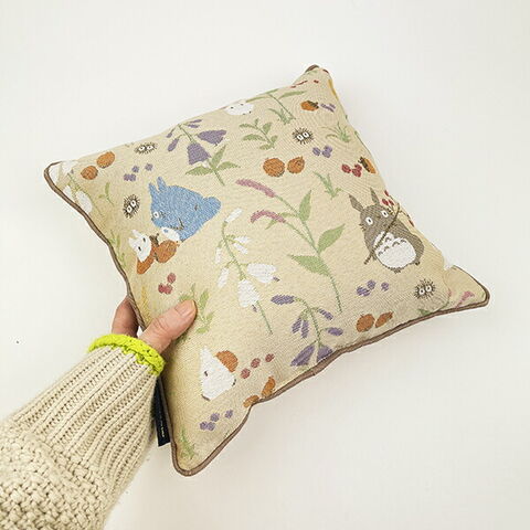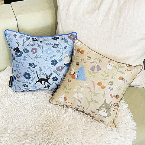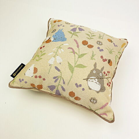 ゴブラン織りのクラシカルなデザインにキャラクターが取り入れられたカワイイクッションです。インテリアのワンポイントにおすすめです。こちらはとなりのトトロデザインです。