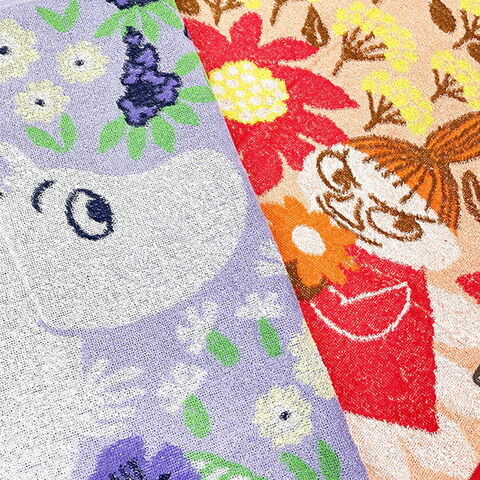 多色織りジャガードを織るための専用織機を使い、色彩豊かに表現されたポルトガル製のタオルです。ムーミンキャラクターとお花が大胆にデザインされていて、まるで一枚絵のような美しさ。ギフトにもおすすめです♪