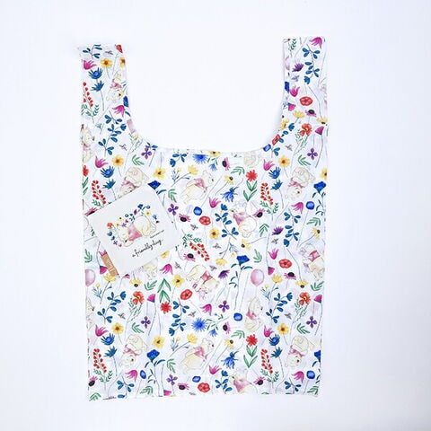 くまのプーさんの持ち運びに便利なコンパクトに収納できるエコバッグです。プーさんとお花たちがデザインがとってもキュート♪回収したペットボトルから作られたポリエステル繊維の再生ポリエステルを使用しています。大容量でスーパーでのお買い物などにぴったり☆便利な収納袋付きが嬉しいポイントです♪じゅわっとした優しいカラーで大人でも使いやすいバッグです☆彡