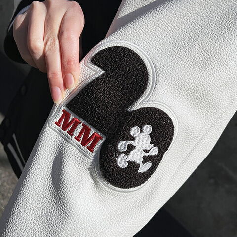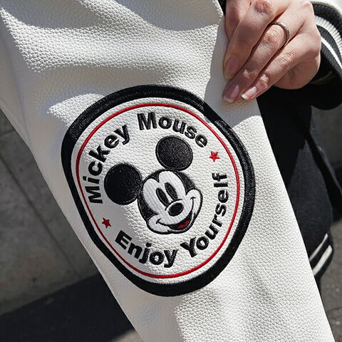 カッコイイスタジャンにカワイイキャラクターでユニセックスに着れます♪背中にメイン柄があり、袖や胸の部分にもイラストがデザインされていて素敵!胴の部分は厚めの生地で、袖は合皮でカッコイイ。秋~春と長く着ていて抱ける一着です。こちらはミッキーのデザインです。