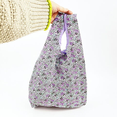 サンベリーナ柄とは親指姫をモチーフにした柄です。メルヘンな可愛さですが大人っぽい印象にまとめられていて使いやすいデザインです。折りたためるエコバッグで携帯しやすい♪こちらはクロミちゃんデザインです。