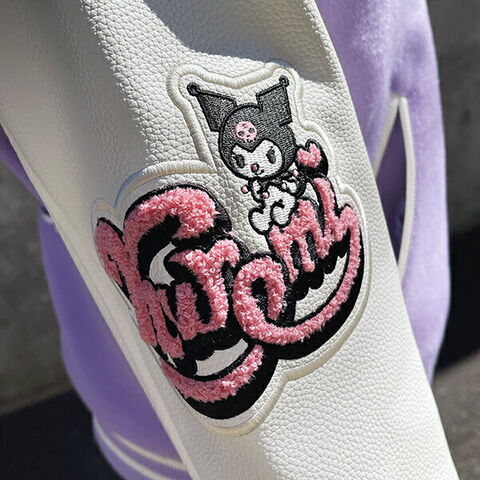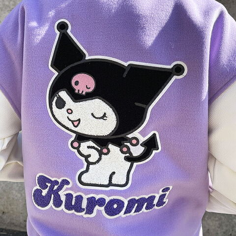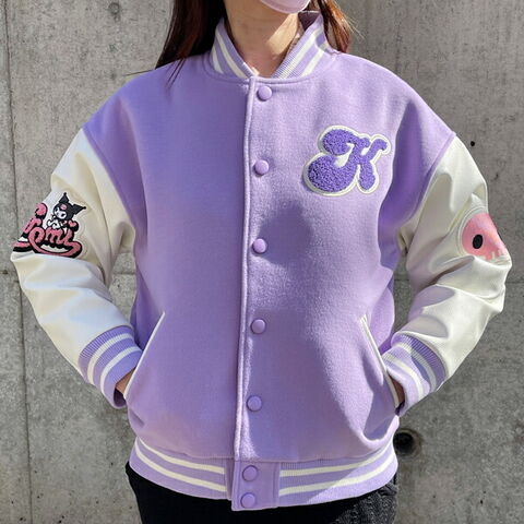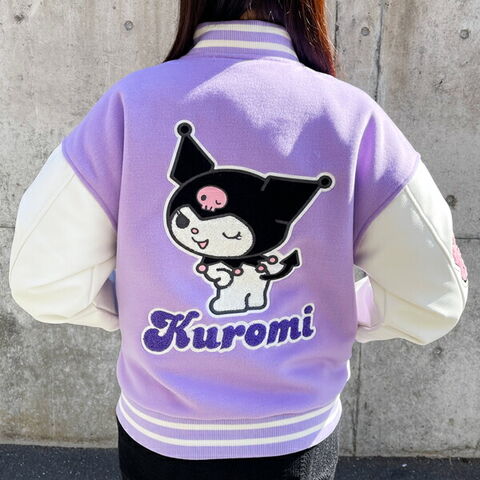 カッコイイスタジャンにカワイイキャラクターでユニセックスに着れます♪背中にメイン柄があり、袖や胸の部分にもイラストがデザインされていて素敵!胴の部分は厚めの生地で、袖は合皮でカッコイイ。秋~春と長く着ていて抱ける一着です。こちらはクロミちゃんのデザインです。