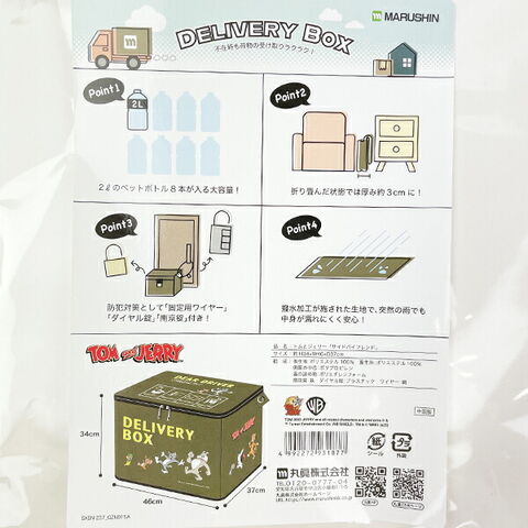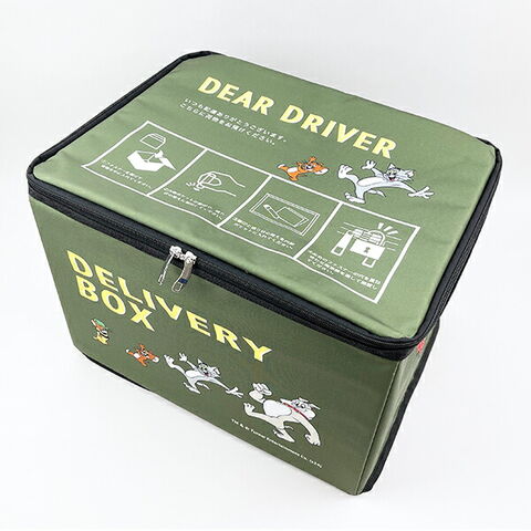 トムとジェリーのデザインがかわいい宅配ボックスです。2リットルのペットボトルが入る大容量!防犯対策として、固定用ワイヤー・ダイヤル錠・南京錠付き◎撥水加工が施された生地なので、突然の雨でも中身が濡れにくく安心です!